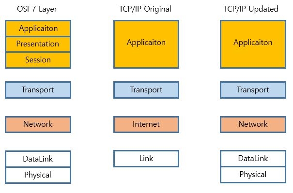 TCP/IP 계층은 2가지 버전이 있다 → TCP/IP Original(4계층), TCP/IP Updated(5계층)