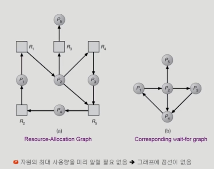 Resource Allocation Graph에서 자원을 빼버리고 실선을 이으면 Waif-for graph가 된다.