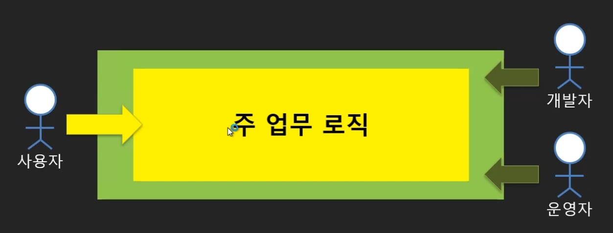 OOP는 사용자 입장(주 업무)에서의 프로그래밍이고 AOP는 개발자나 운영자 입장(보조 업무)에서의 프로그래밍이다.