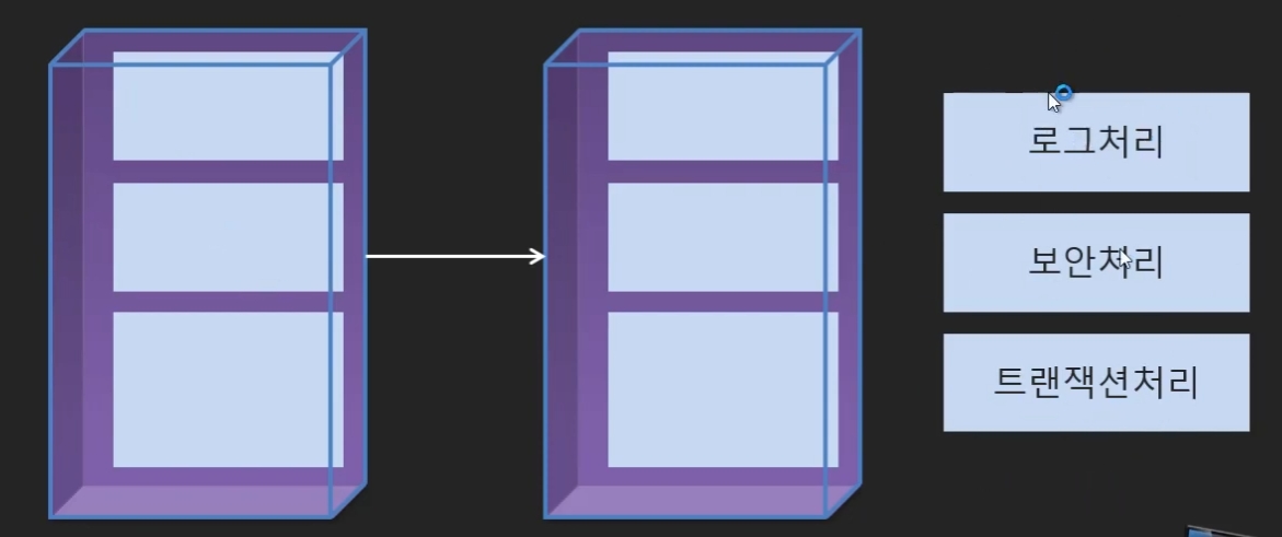 OOP로 사용자에 필요한 주 업무를 만들었지만 상황에 따라 성능 을 위한 로그 처리, 보안 처리, 트랜잭션 처리 등과 같은 보조 업무가 필요할 수 있다.
